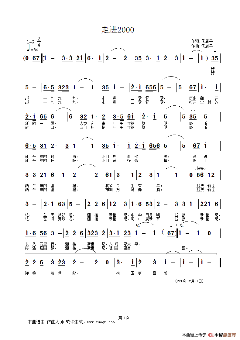此歌写于1999年12月21日,为2000年春节联欢而作。《鹤城晚报》2000年3月4日发表。