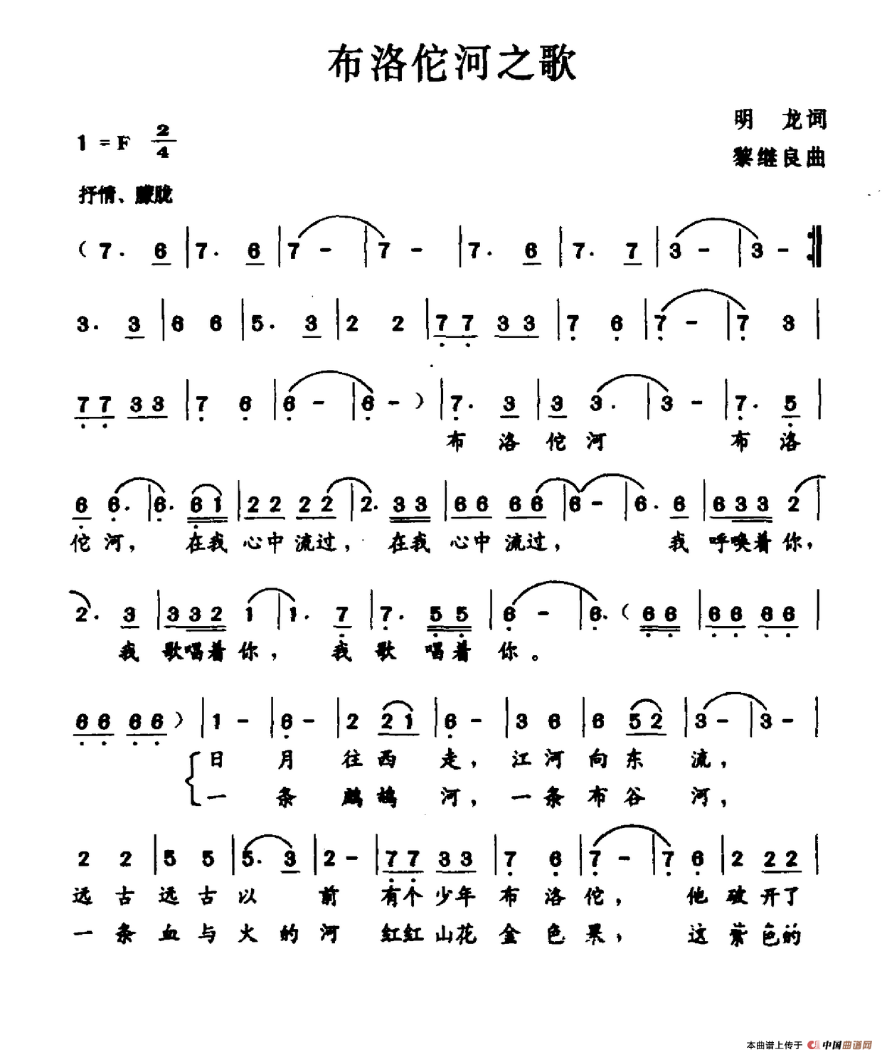 关于《布洛佗河之歌》曲谱的评论