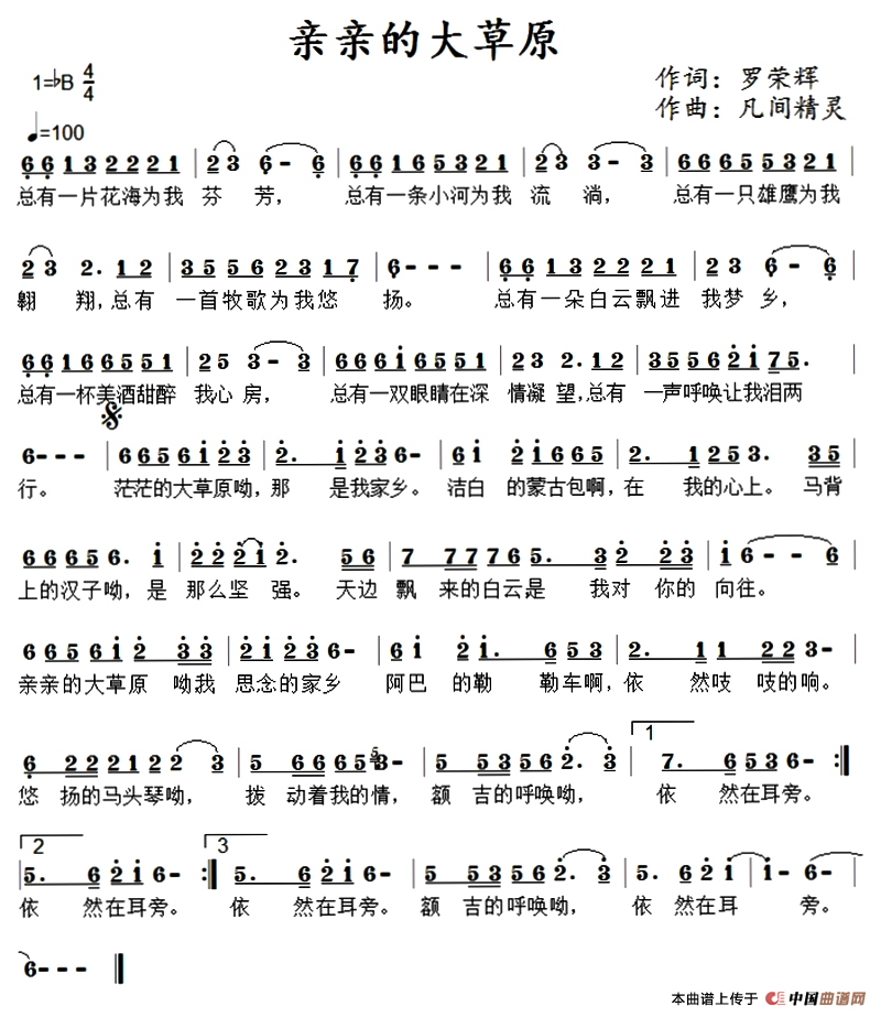关于《亲亲的大草原》曲谱的评论