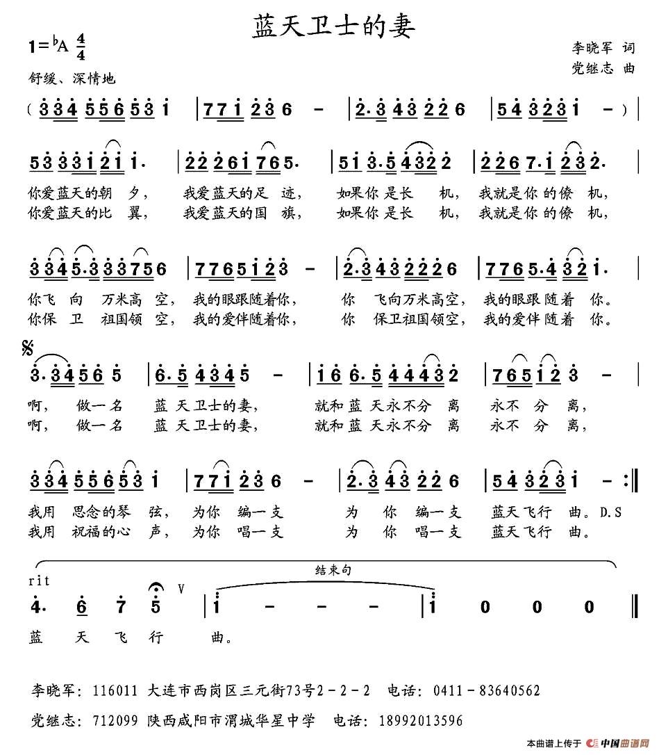 关于《蓝天卫士的妻》曲谱的评论