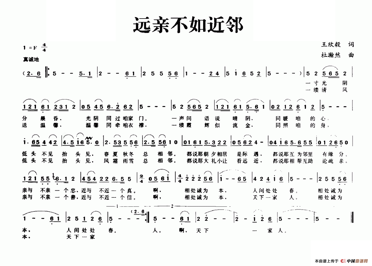 远亲不如近邻(王欣毅词 杜瀚然曲)