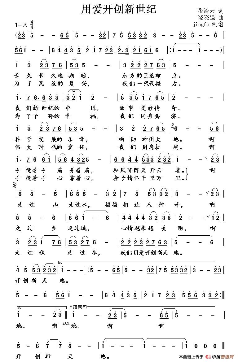 关于《用爱开创新世纪》曲谱的评论