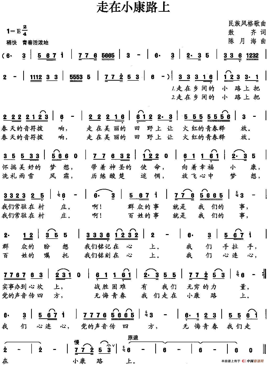 关于《走在小康路上》曲谱的评论