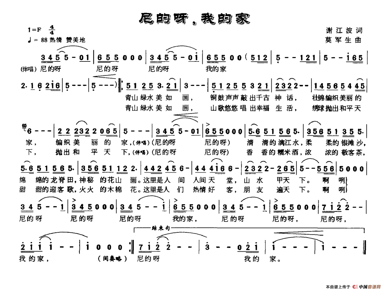 关于《尼的呀,我的家》曲谱的评论