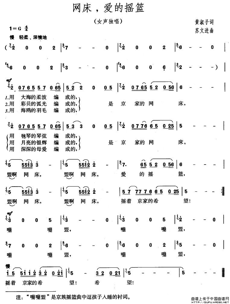 关于《网床,爱的摇篮》曲谱的评论