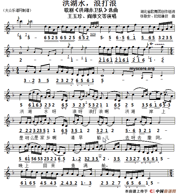 原标题:名家演唱的歌曲:洪湖水,浪打浪(简线对照,中外皆宜)