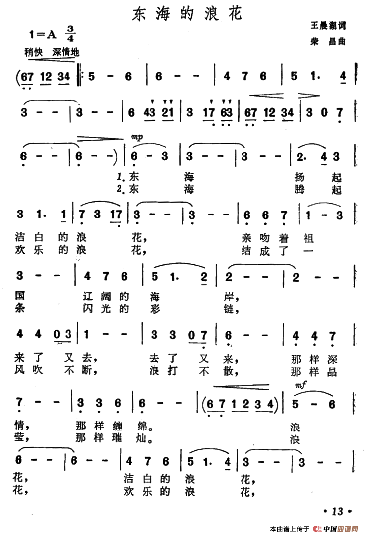 关于《东海的浪花》曲谱的评论