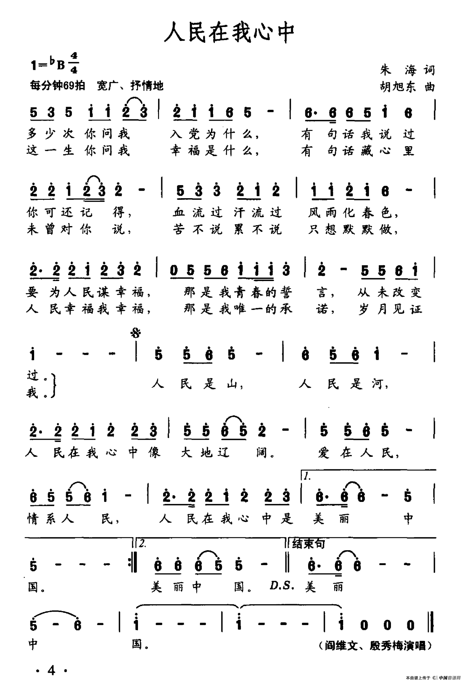 关于《人民在我心中》曲谱的评论