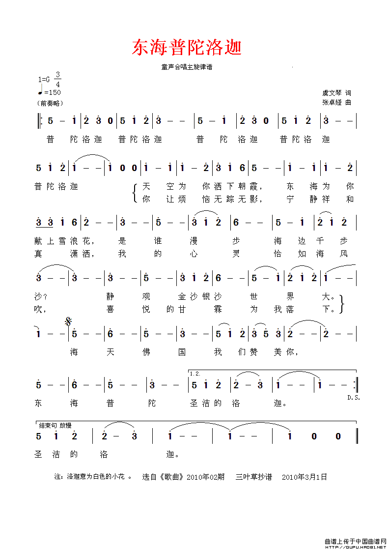 关于《东海普陀洛迦》曲谱的评论