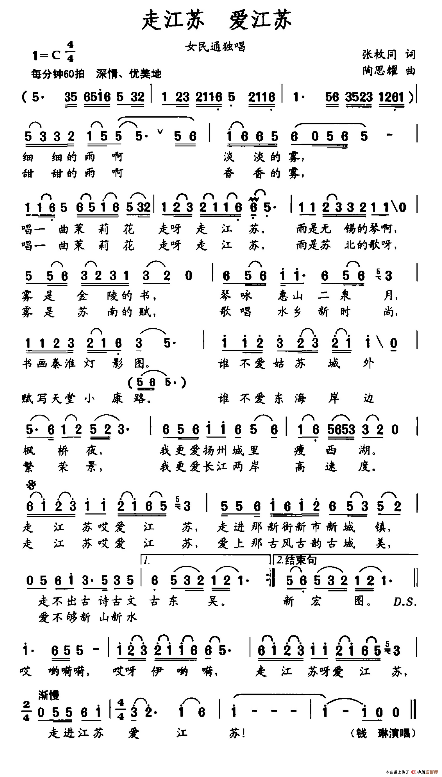 关于《走江苏 爱江苏》曲谱的评论