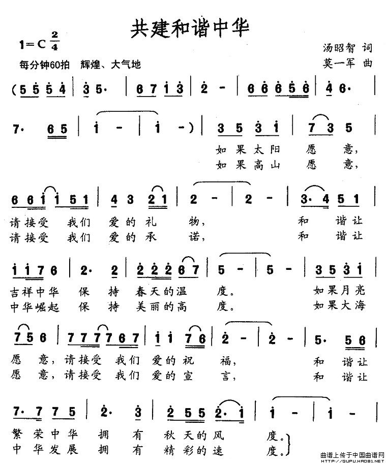 关于《共建和谐中华》曲谱的评论