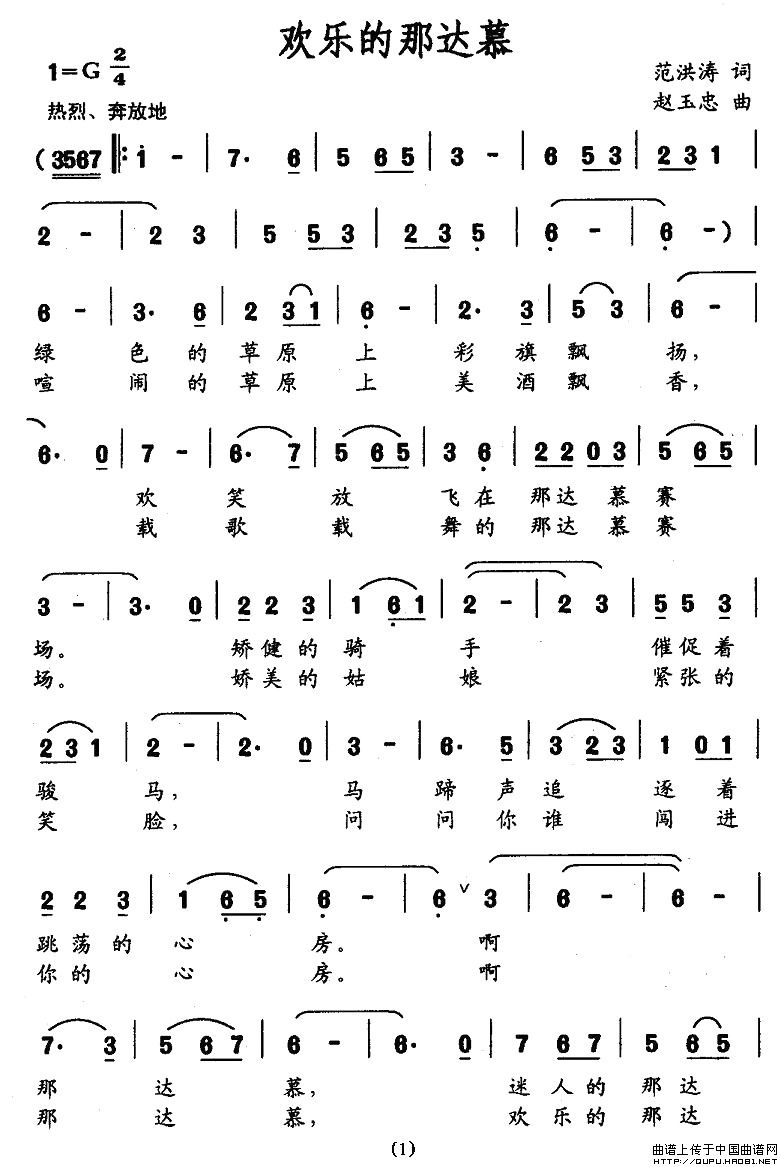关于《欢乐的那达慕》曲谱的评论