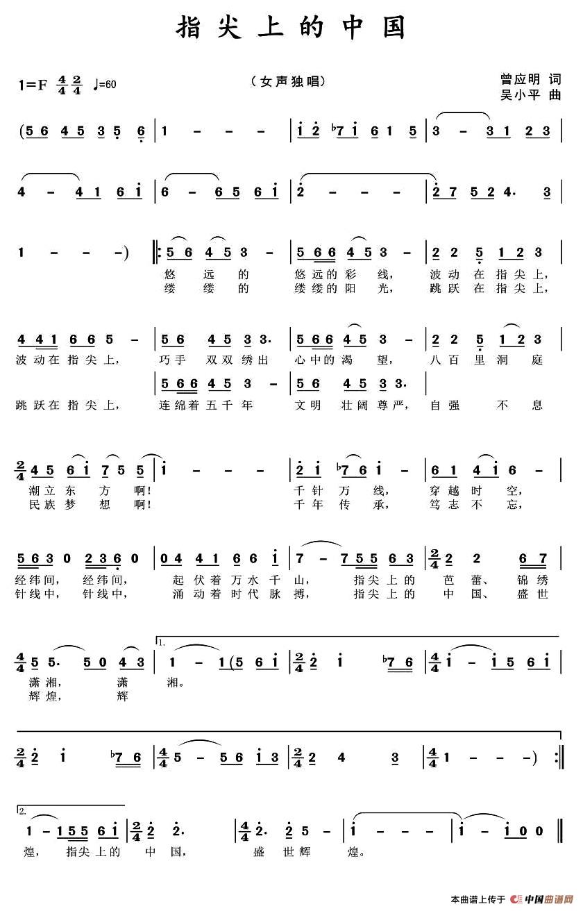 致谢:《中国曲谱网》衷心感谢作者老师馈赠原版歌谱!
