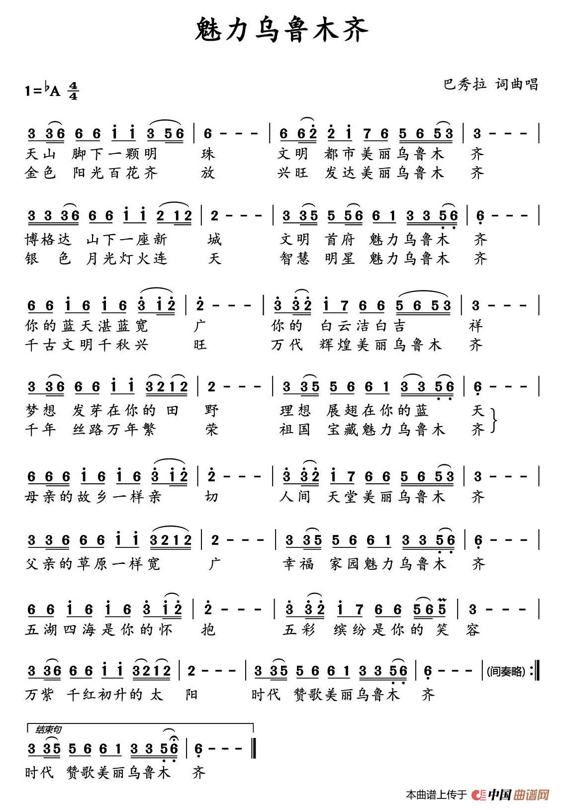 魅力美丽的乌鲁木齐 是新疆首府城市,是天山山脉博格达山下一个美丽、魅力的大城市, 是全疆政治、经济、文化、科教和交通中心 。 乌鲁木齐 主体民族13个,在党的领导下各族人民创造着灿烂的文化。 作者四十多年生活和工作 在这个美丽城市,她早已成了我的第二故乡。 作者写这首歌是歌唱乌鲁木齐的亲切与发展,魅力与美丽!