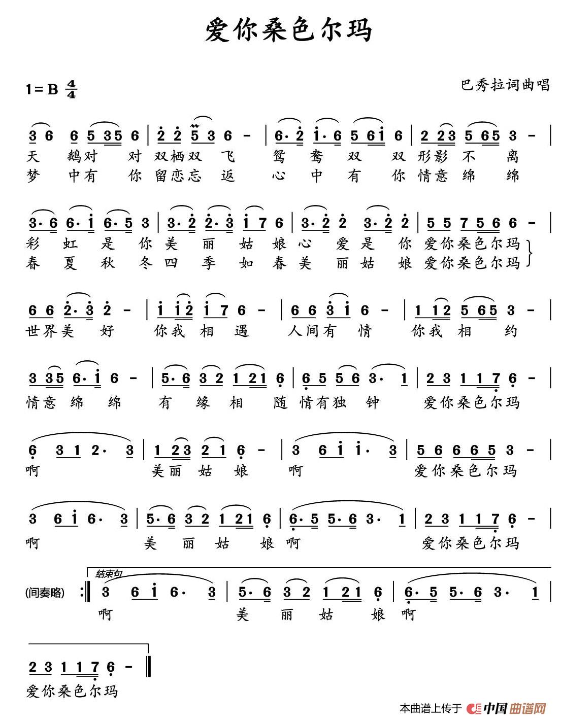 《爱你桑色尔玛》是作者写词作曲歌唱的草原美丽姑娘和美好爱情的歌曲。桑色尔玛是人们想象中的美丽纯洁的草原姑娘。爱情永远是作家艺术家笔下的美丽!桑色尔玛是想像中草原上的一个美丽的蒙古姑娘,美的化身,爱的使者。「窈窕淑女,君子好逑」,歌唱桑色尔玛,就是 歌唱纯洁的爱情。 愿天下有情人都成眷属。