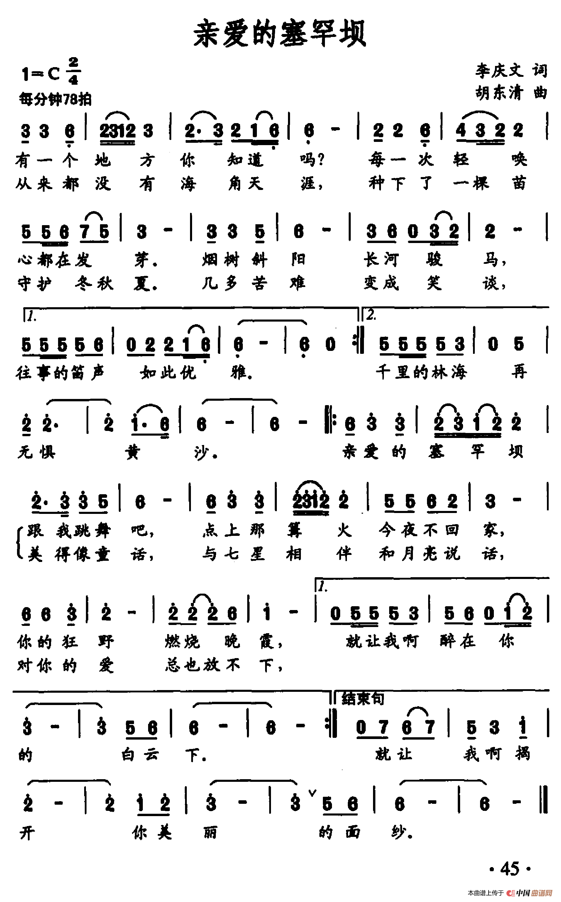 关于《亲爱的塞罕坝》曲谱的评论
