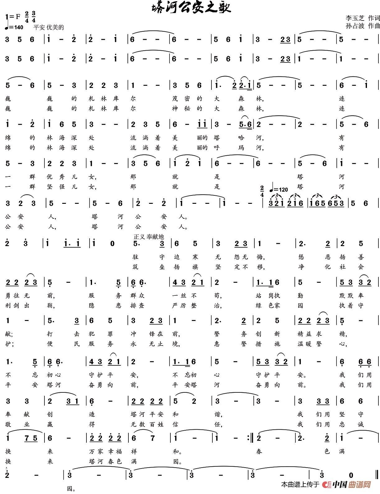关于《塔河公安之歌》曲谱的评论