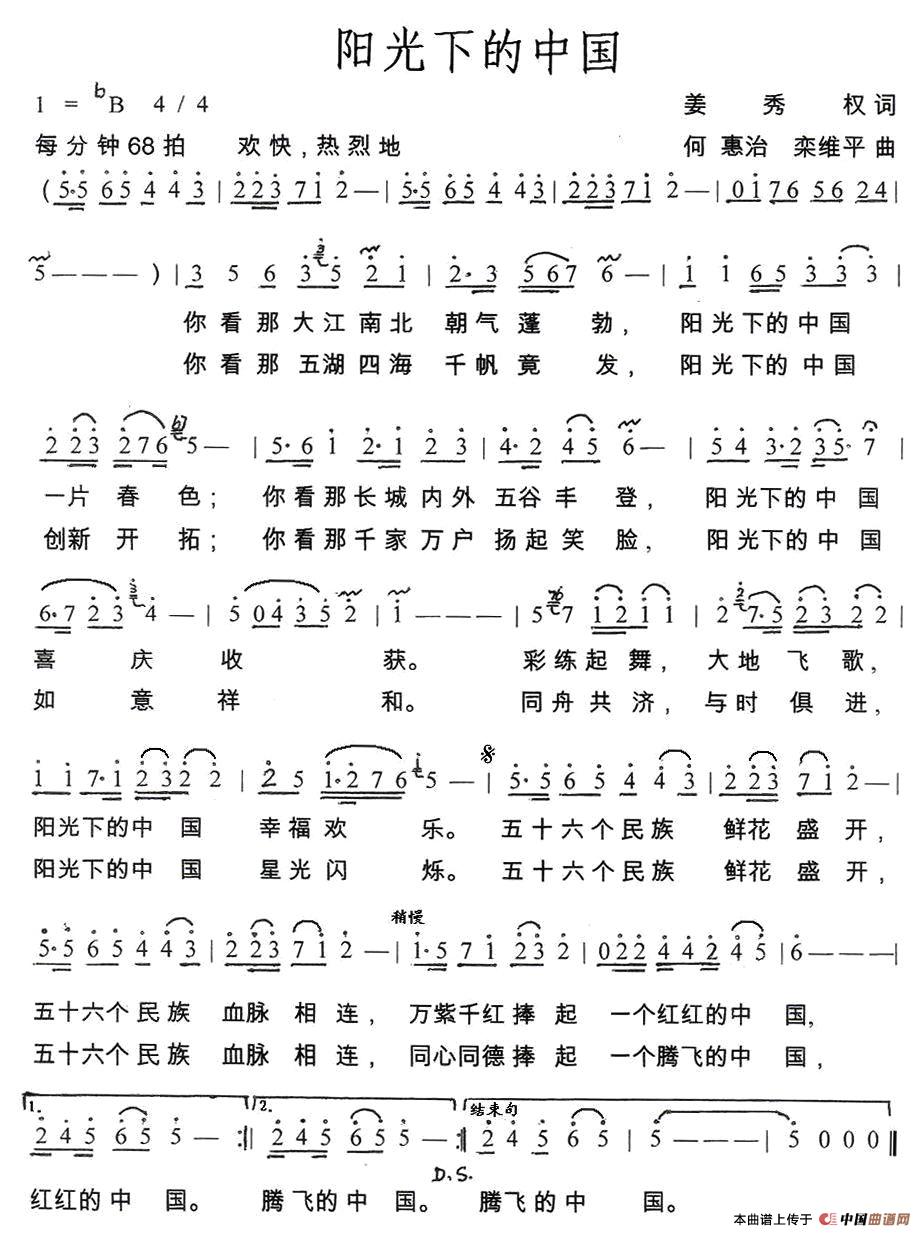 关于《阳光下的中国》曲谱的评论