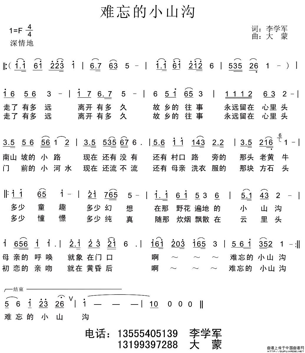 关于《难忘的小山沟》曲谱的评论