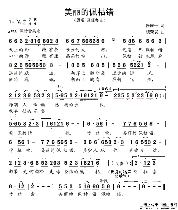 呀拉索,美丽的佩枯错,呀拉索,美丽的佩枯错。