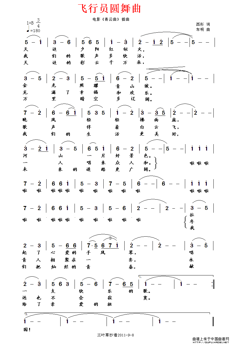 关于《飞行员圆舞曲》曲谱的评论