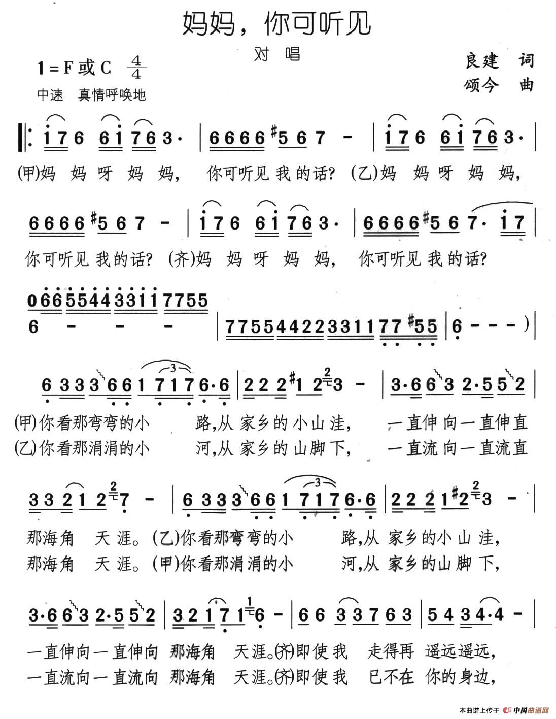 致谢:《中国曲谱网》衷心感谢作者老师馈赠原版歌谱!