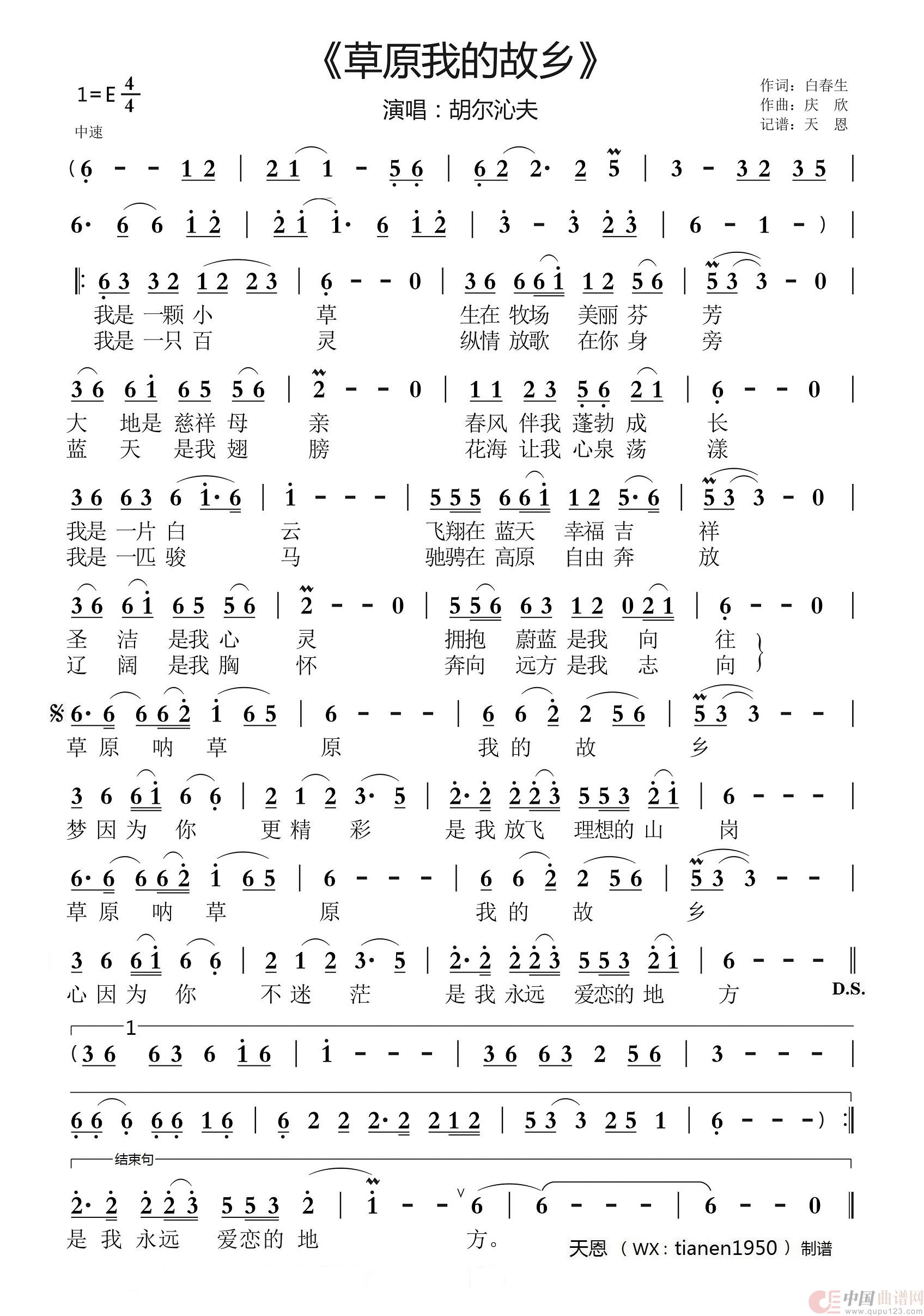 关于《草原我的故乡》曲谱的评论