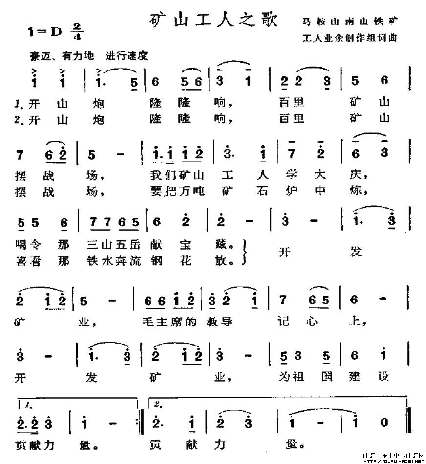 作词:马鞍山南山铁矿工人业余创作组 作曲:马鞍山南山铁矿工人业余创作组 格式:简谱 来源:《中国曲谱网》 上传:秋叶起舞