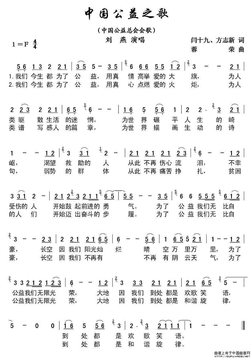 关于《中国公益之歌》曲谱的评论