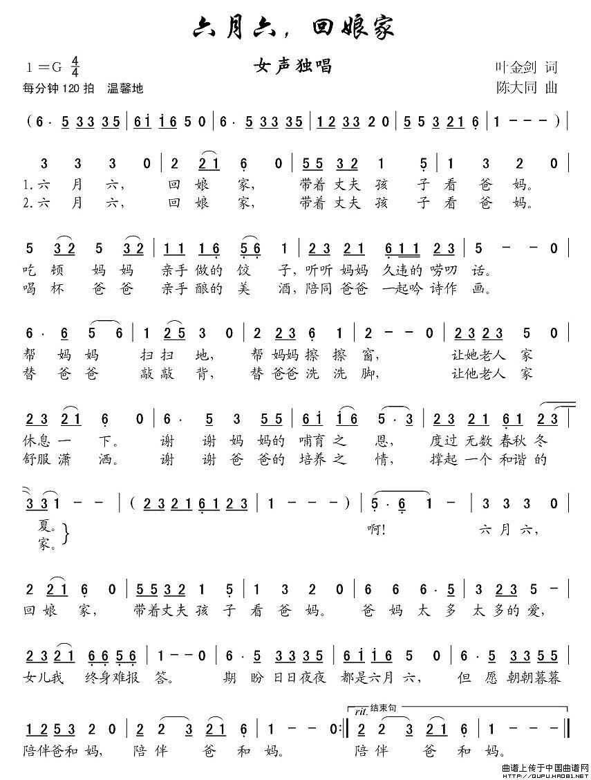 关于《六月六,回娘家》曲谱的评论