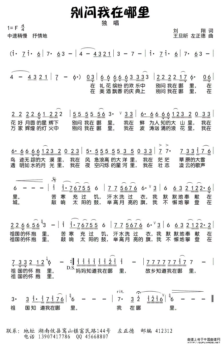 别问我在哪里(刘翔词 王旦昕 左正德曲)