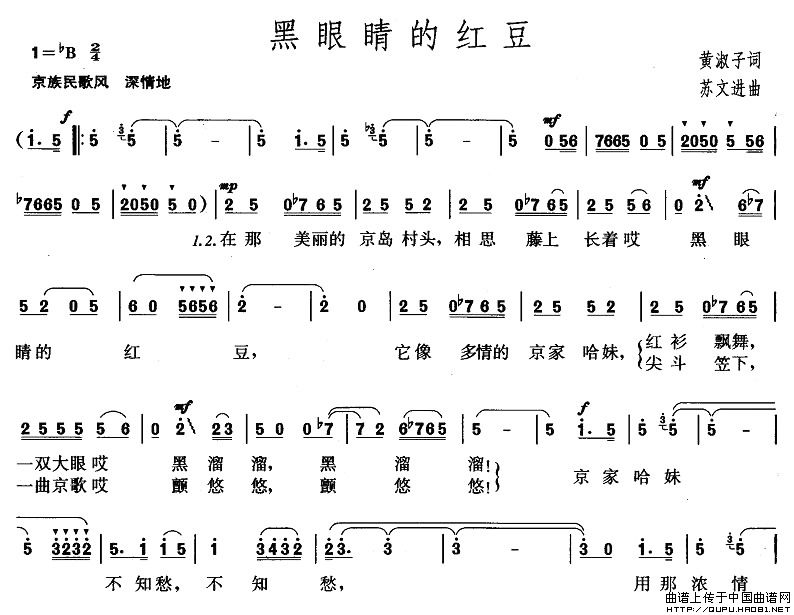 关于《黑眼睛的红豆》曲谱的评论