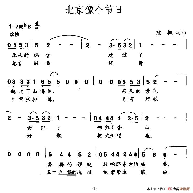 关于《北京像个节日》曲谱的评论