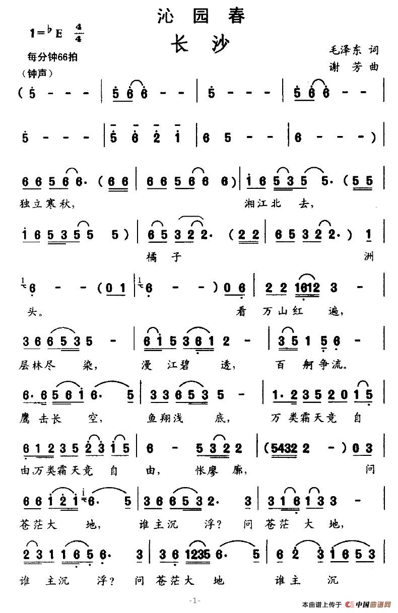 关于《沁园春·长沙》曲谱的评论