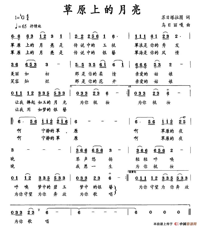 关于《草原上的月亮》曲谱的评论