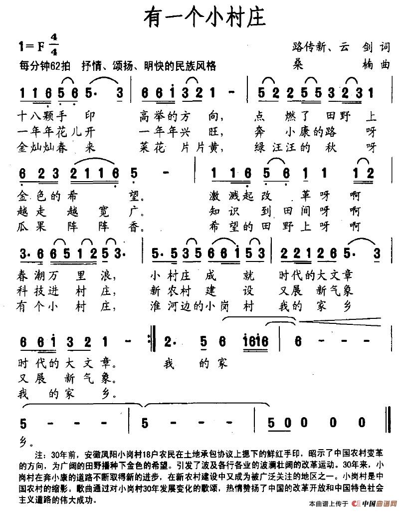 关于《有一个小村庄》曲谱的评论