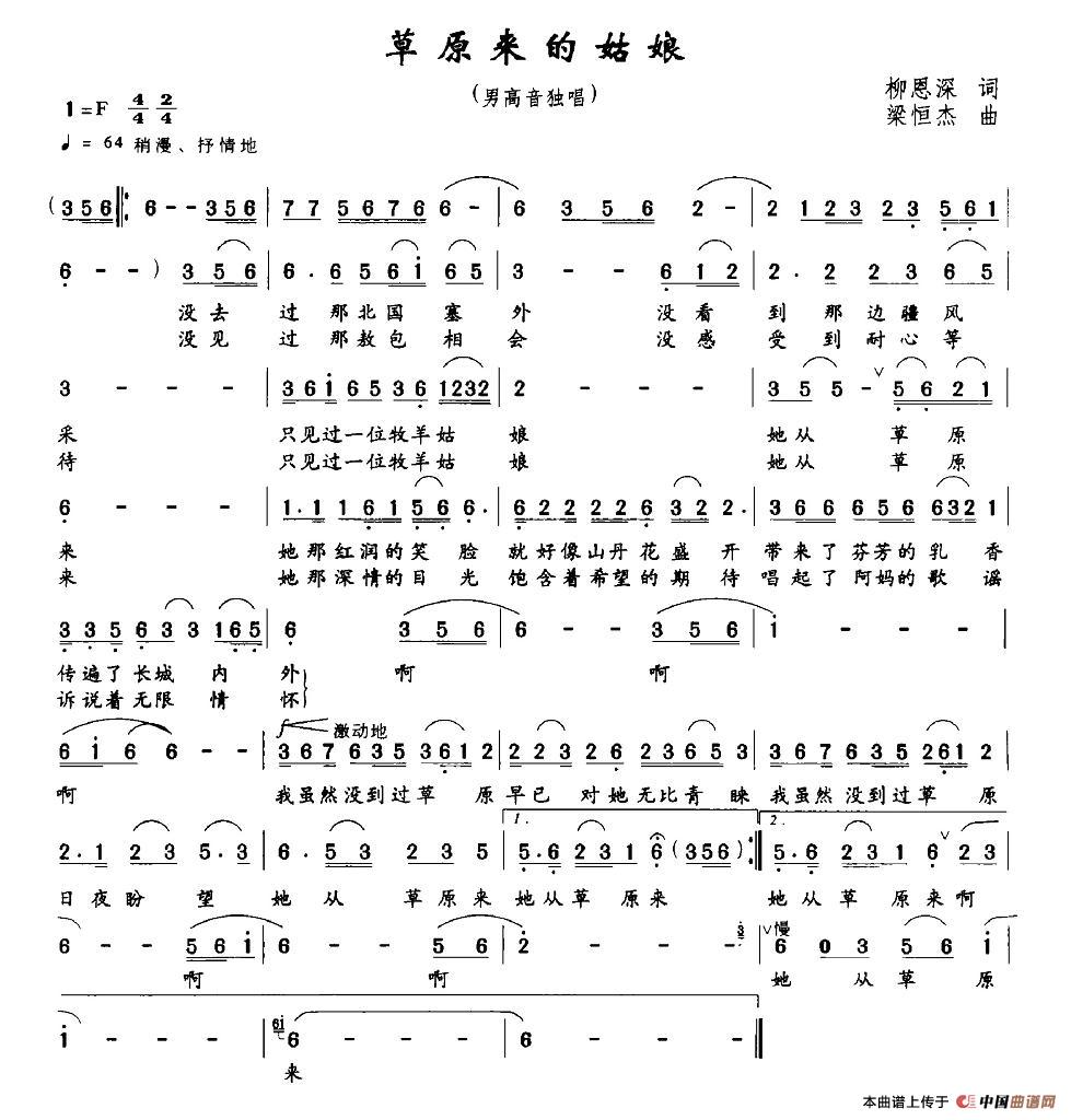 关于《草原来的姑娘》曲谱的评论