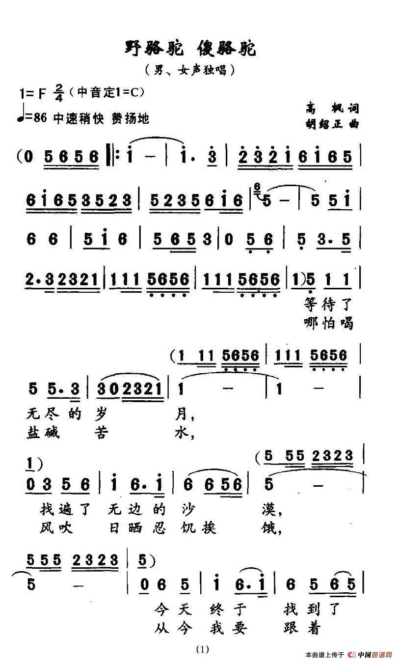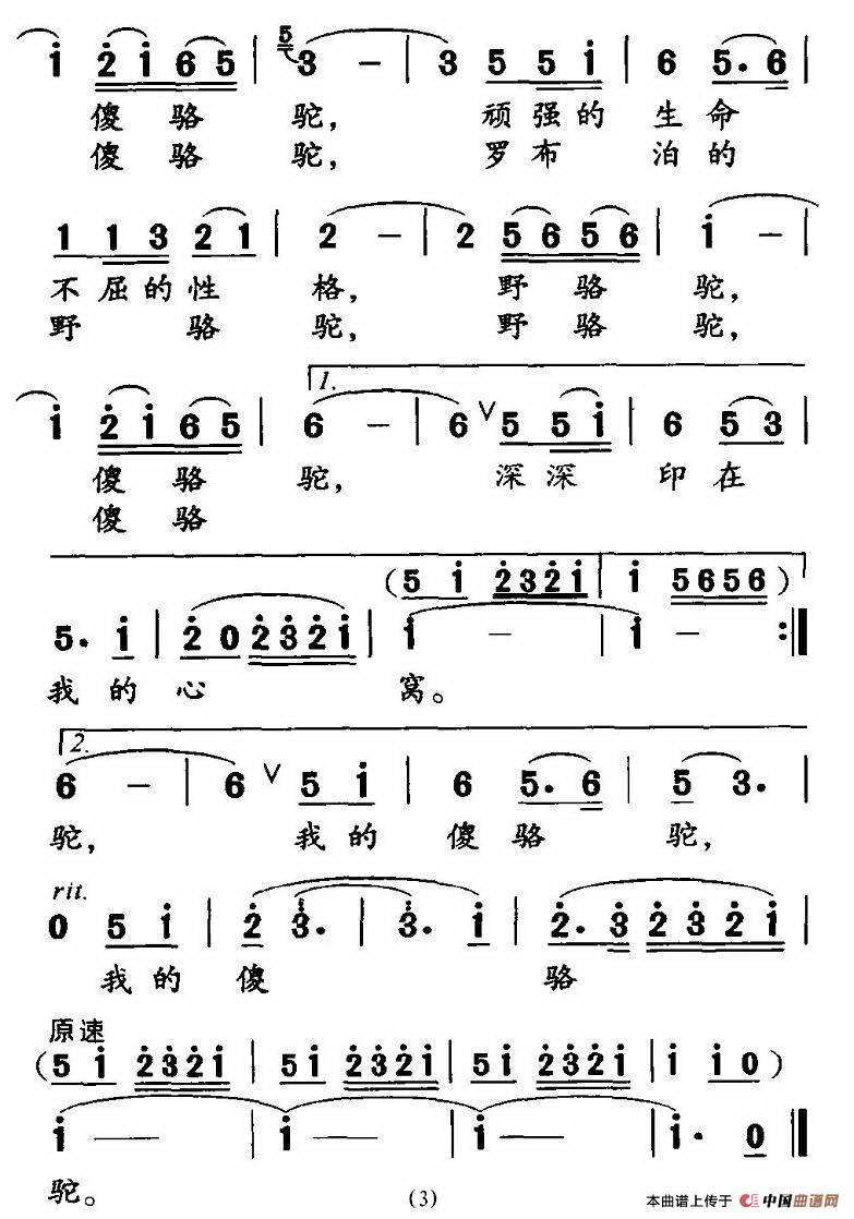 关于《野骆驼 傻骆驼》曲谱的评论