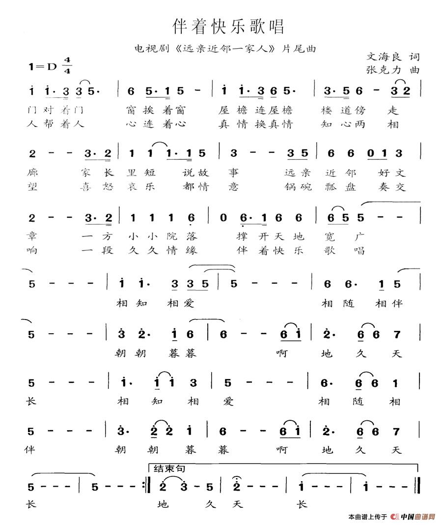 伴着快乐歌唱(电视剧《远亲近邻一家亲》片尾曲)