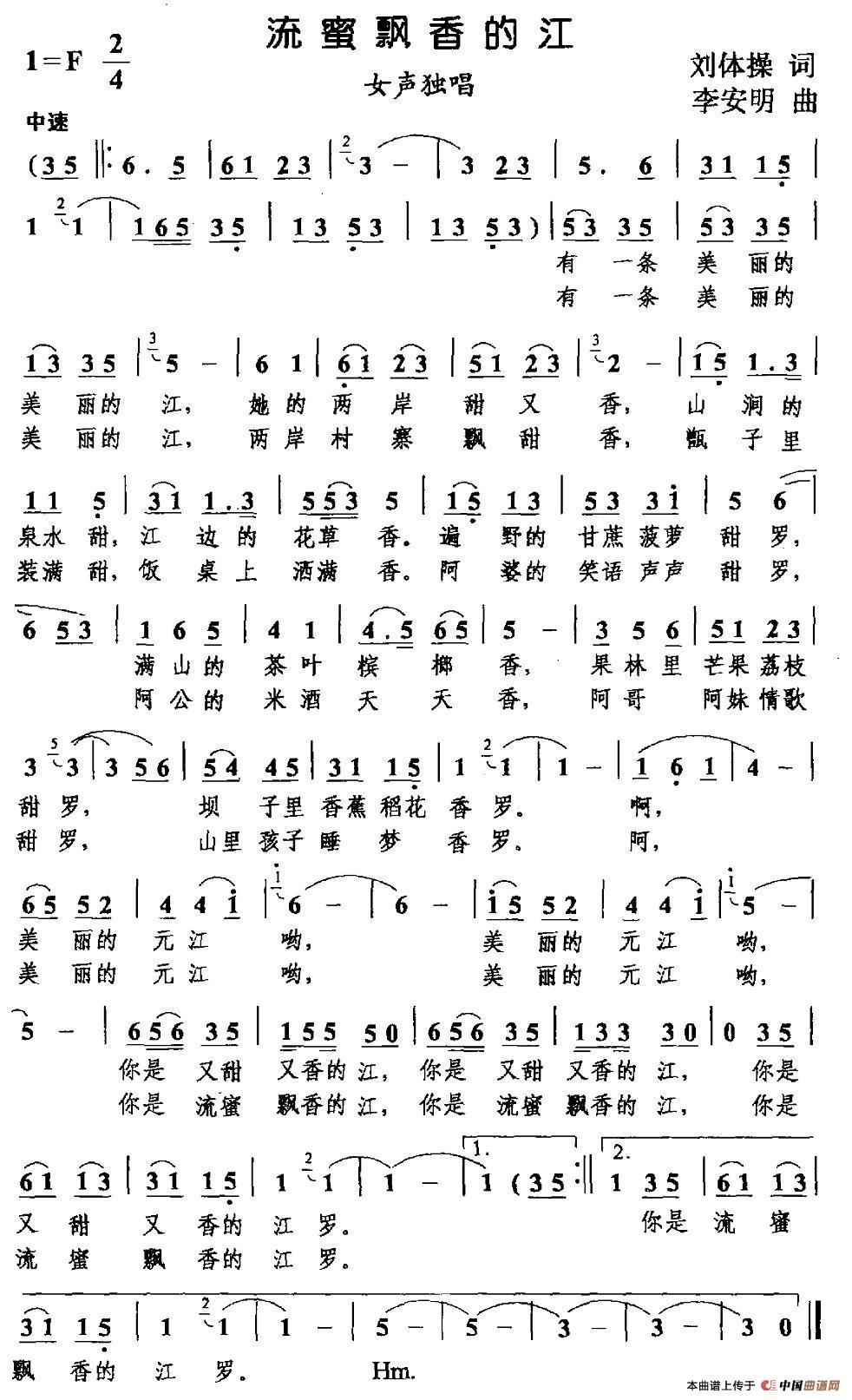 关于《流蜜飘香的江》曲谱的评论