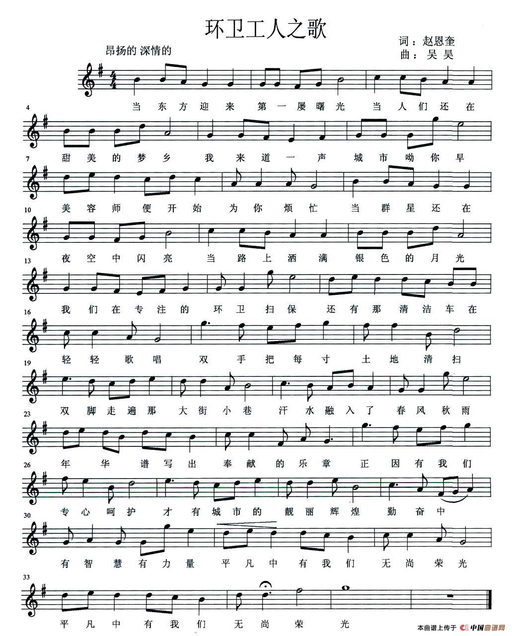 关于《环卫工人之歌》曲谱的评论