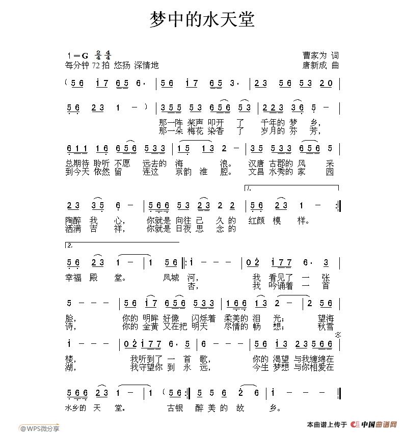 提示:在曲谱图片上单击右键,选择“图片另存为...”即可将曲谱保存到您的电脑中,打印时候可将图片插入到WORD中,调整合适大小打印即可。