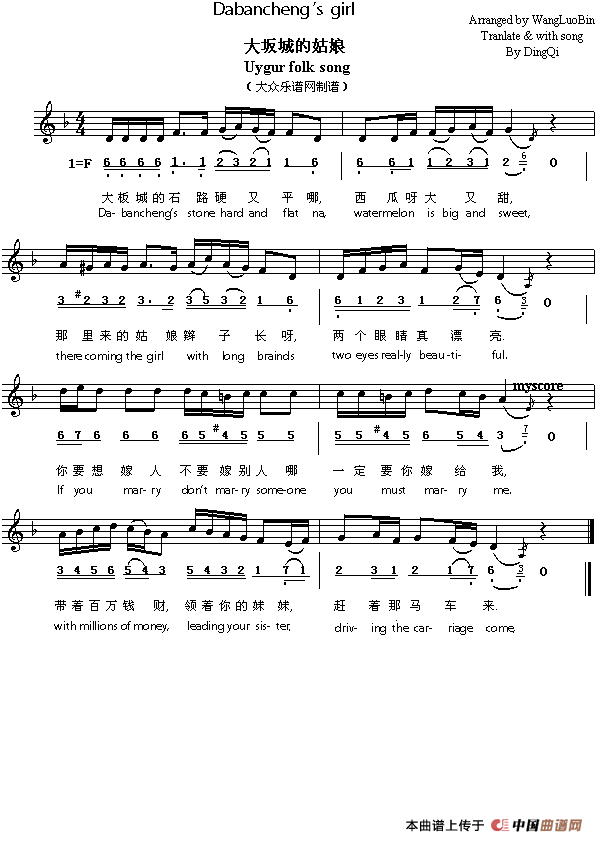关于《Dabengancheng's girl》曲谱的评论