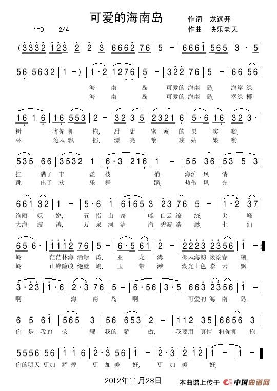 关于《可爱的海南岛》曲谱的评论