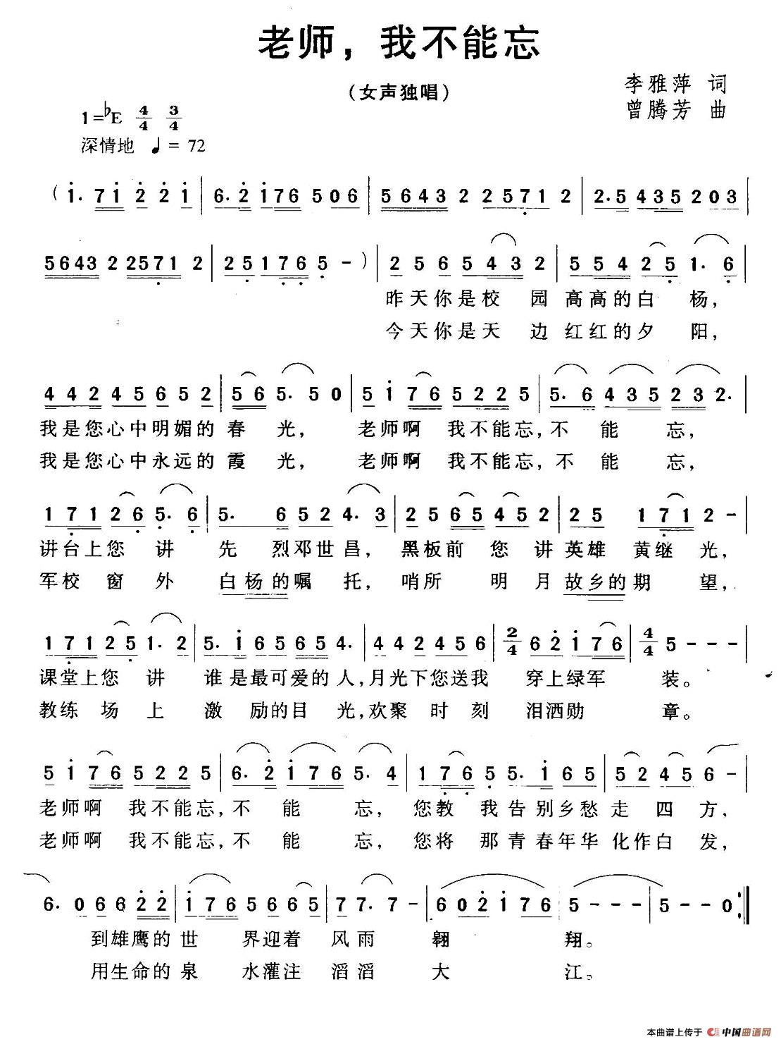 词作者曾是军人,从军人的角度写老师,抒爱国情,是这首歌的特色! [回复]