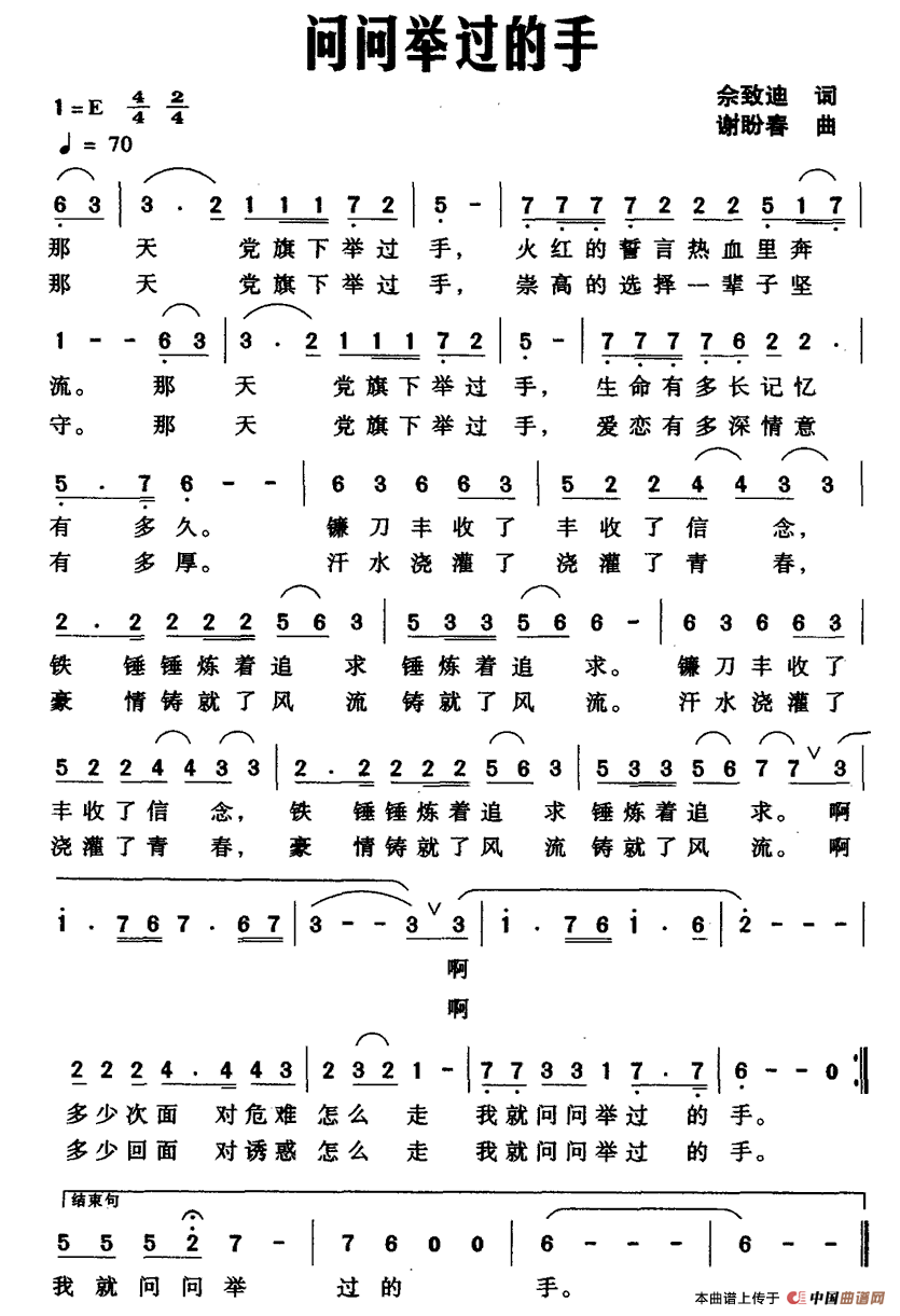 关于《问问举过的手》曲谱的评论