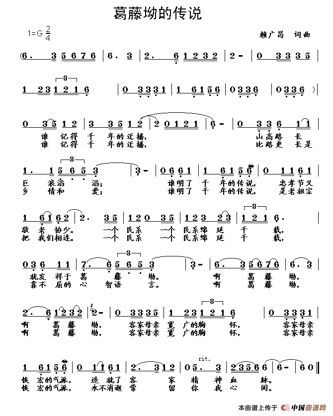 关于《葛藤坳的传说》曲谱的评论