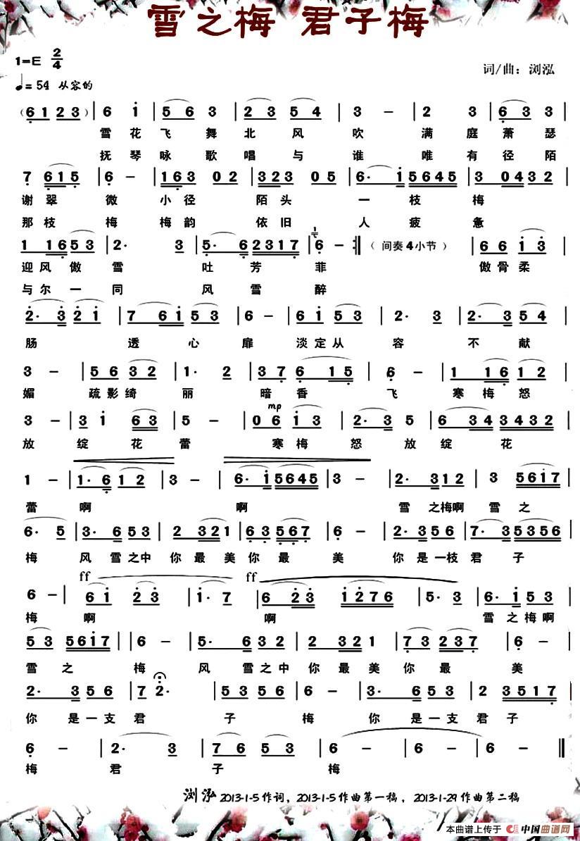 雪之梅 君子梅 词:浏泓 雪花飞舞北风吹 满庭萧瑟谢翠微 小径陌头一枝梅 迎风傲雪吐芳菲 抚琴咏歌唱与谁 唯有径陌那支梅 梅韵依旧人疲惫 与尔一同风雪醉 傲骨柔肠透心扉 淡定从容不献媚 疏影绮丽暗香飞 寒梅怒放绽花蕾 啊-啊- 雪之梅啊雪之梅 风雪之中你最美 你最美 你是一支君子梅 啊-啊- 雪之梅啊雪之梅 你是一支君子梅 君子梅 |