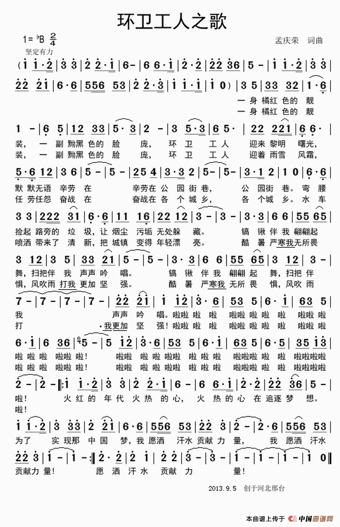 关于《环卫工人之歌》曲谱的评论