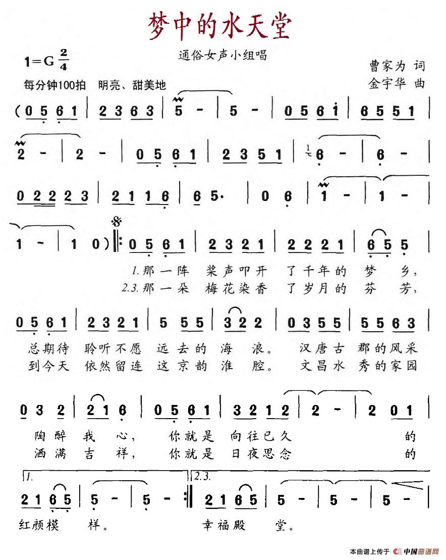 关于《梦中的水天堂》曲谱的评论